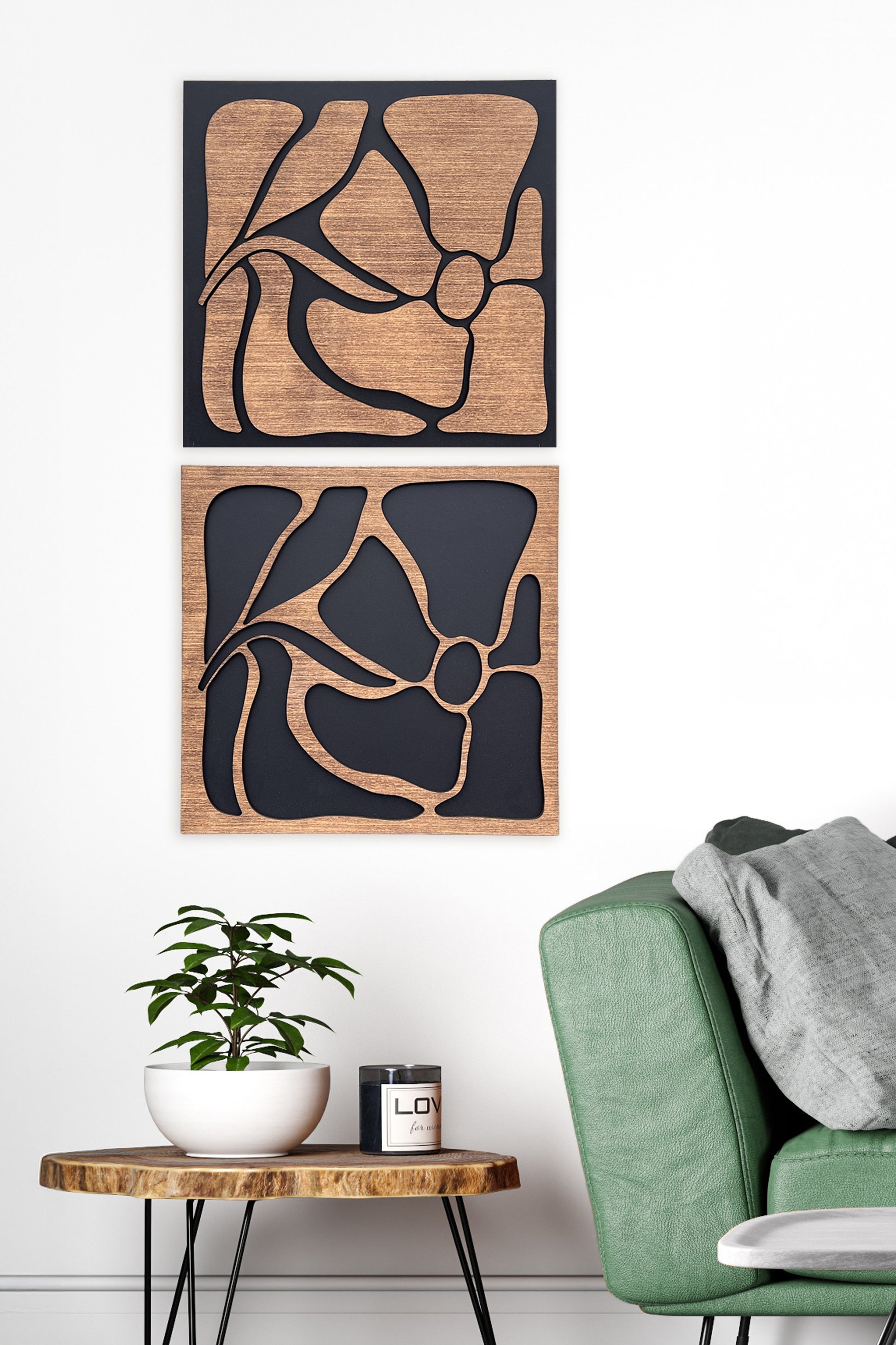 This collection feels like sculpted soil and blooming spirit. With flowing shapes, raw edges, and natural wood tones set against bold black backdrops, Rooted & Rising is a visual poem — grounded, yet full of movement. These designs honor the organic beauty of nature and the rhythm of transformation.