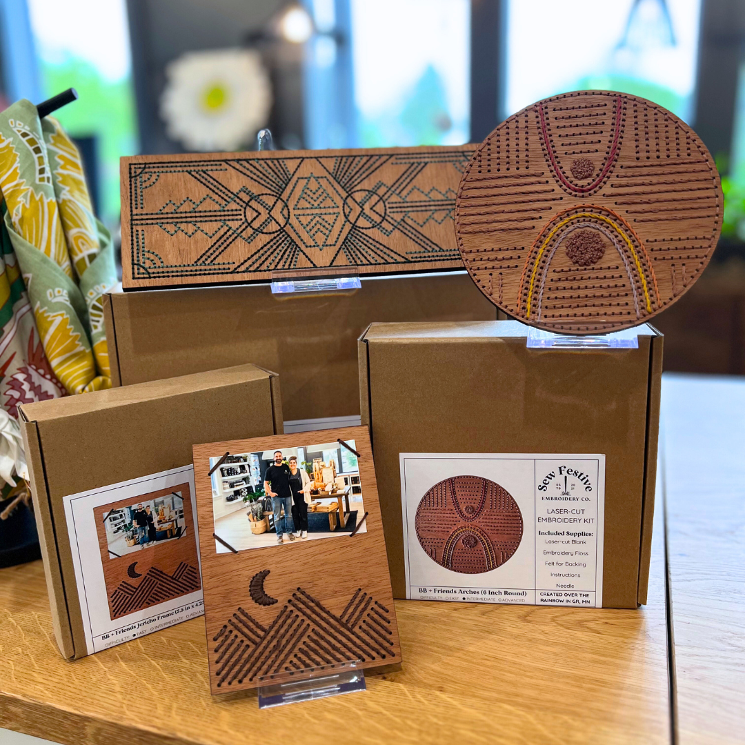 Looking for a screen-free project that calms your mind and sparks your creativity? Our Sew Festive Laser Cut Embroidery Kits are the perfect way to log out of the scroll and log in with your hands. Each kit features a design based on the original artwork of Duluth artist Anna Bailey, laser cut into wood for a crisp, satisfying stitching experience.