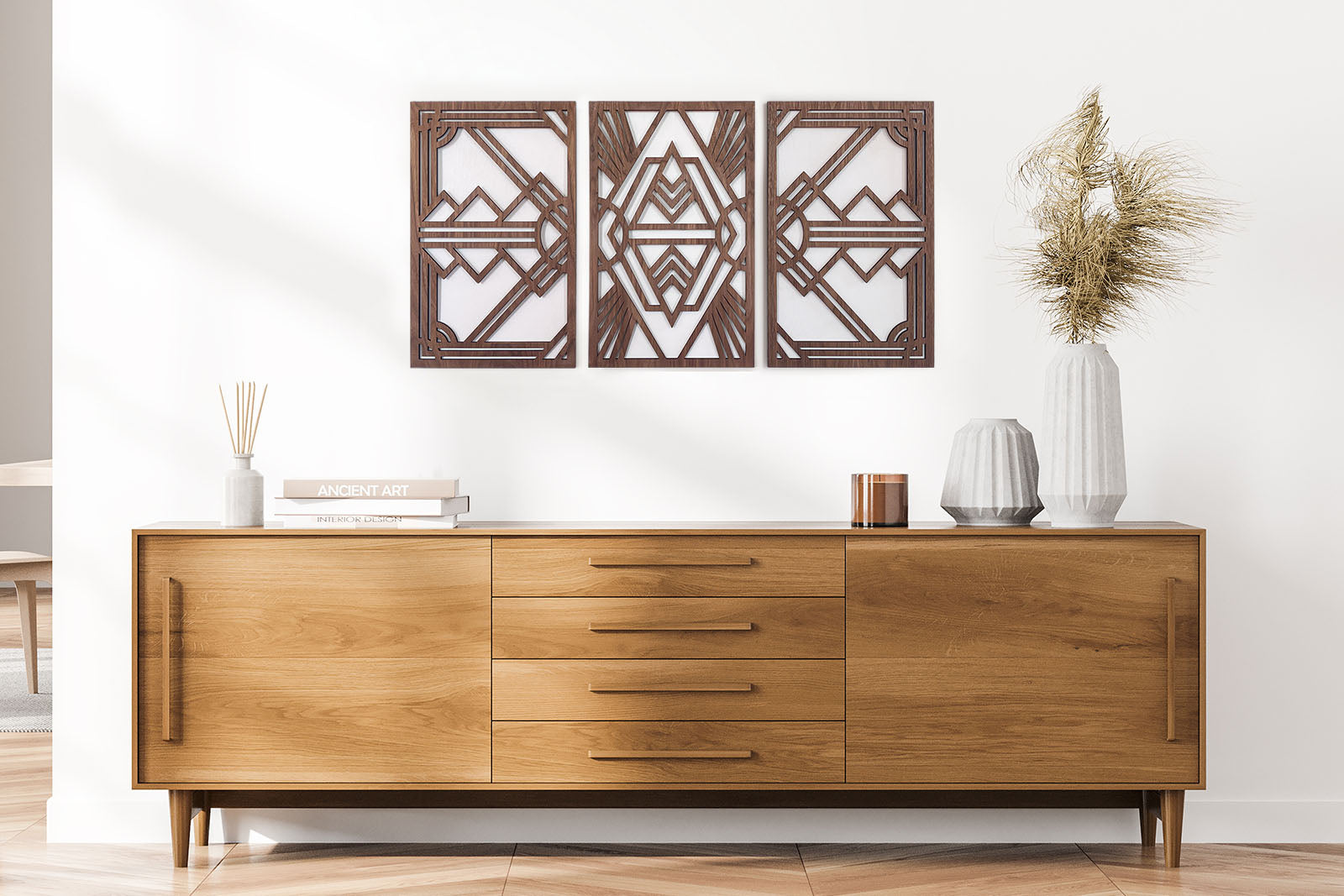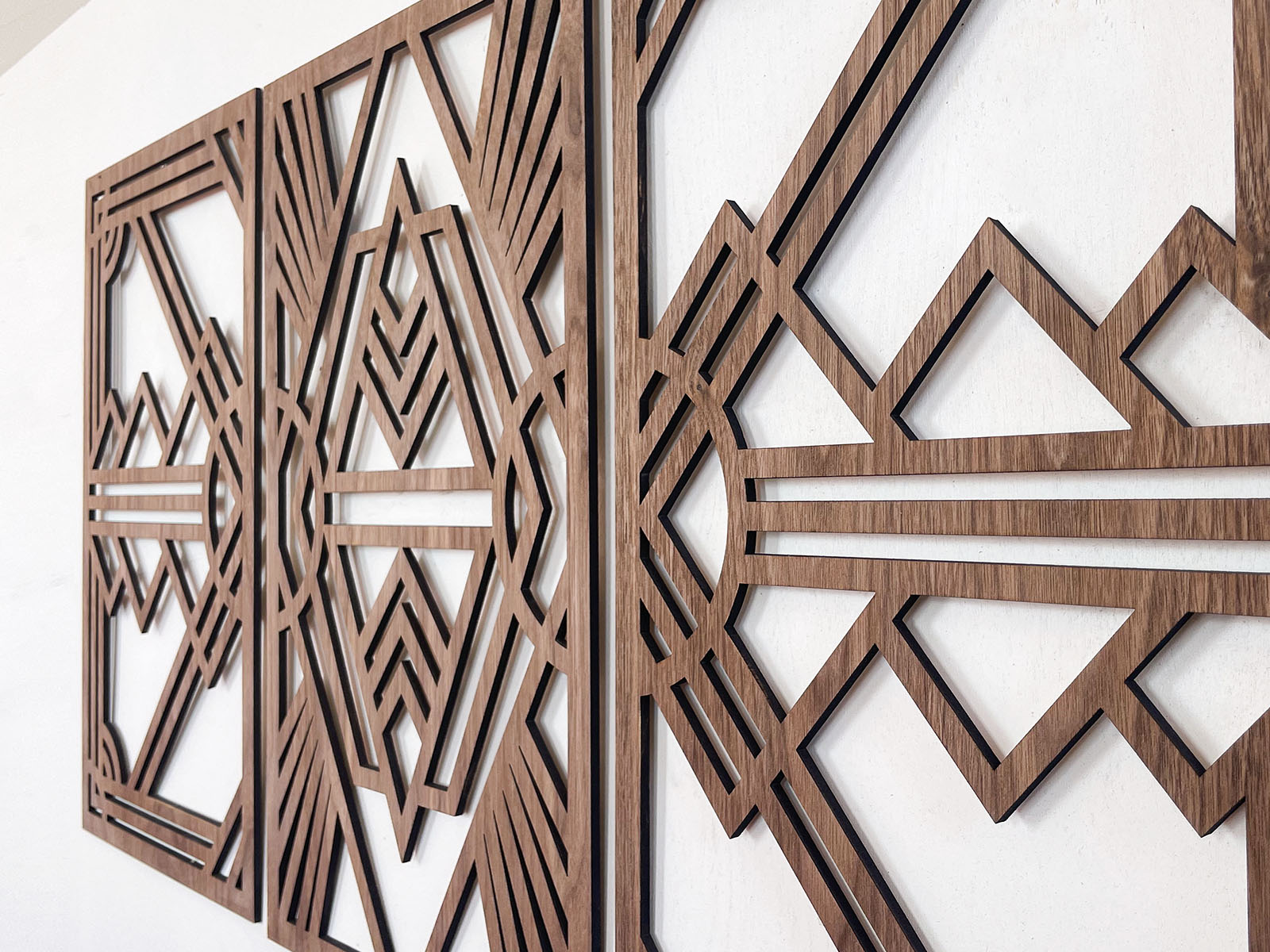 Crafted from rich walnut and precisely cut to reveal both detail and simplicity, each panel measures approximately 11.5" x 18.5". The natural grain and tone of the wood ensures no two pieces are ever the same—every variation tells its own story.
