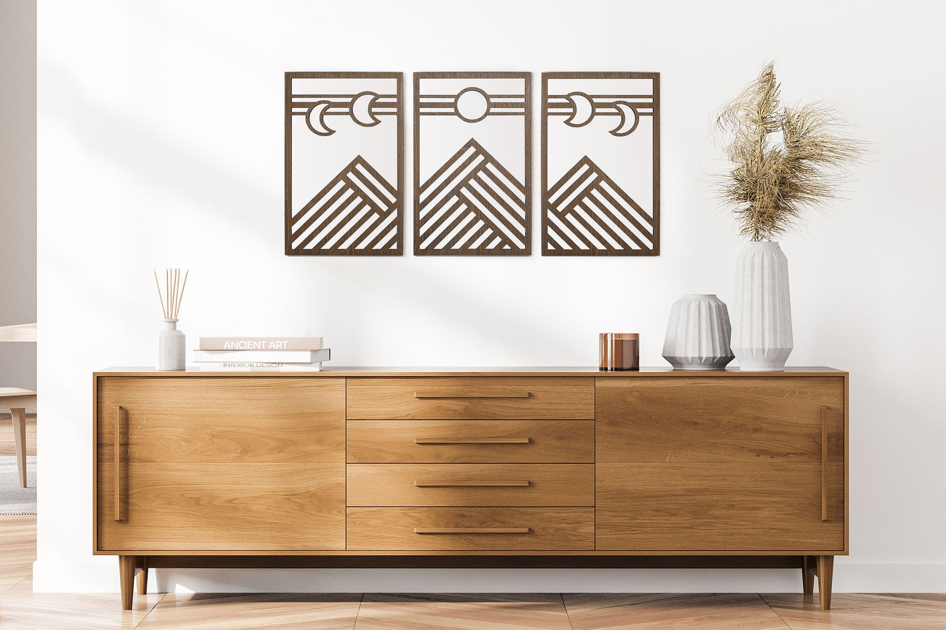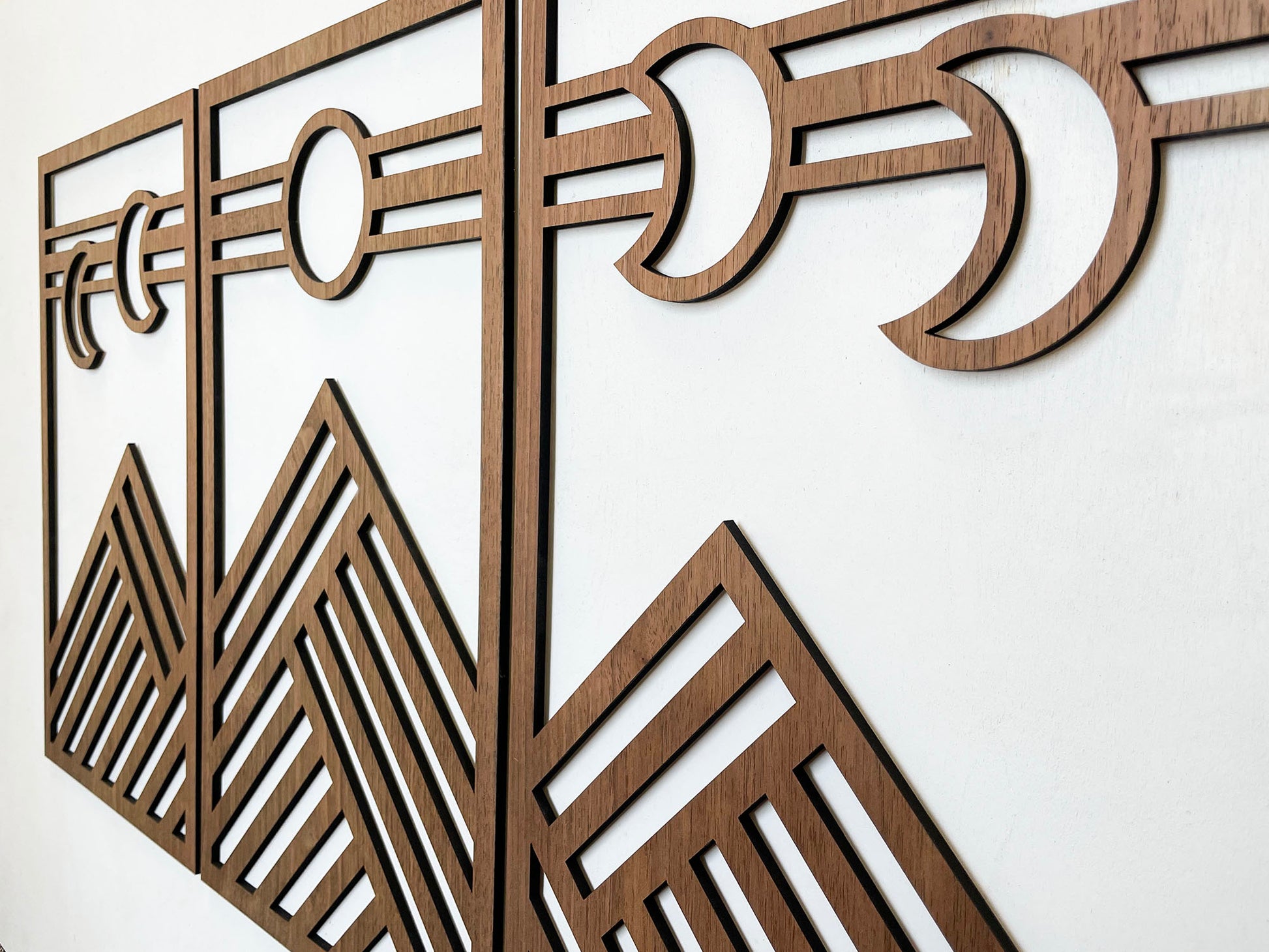 Crafted from natural walnut and precisely cut to reveal intricate detail with graceful simplicity, each piece is as unique as the landscape itself. Measuring approximately 11.5" x 18.5", Jericho is made to hang freely—no frame required—so your wall becomes part of the artwork.